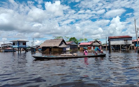 Arribamos a La Balsa, el bar de Belén sobre el río Itaya. En realidad, un cuchitril con una vista preciosa del paisaje de Iquitos en frente. Los parlantes vomitan reguetón, ...